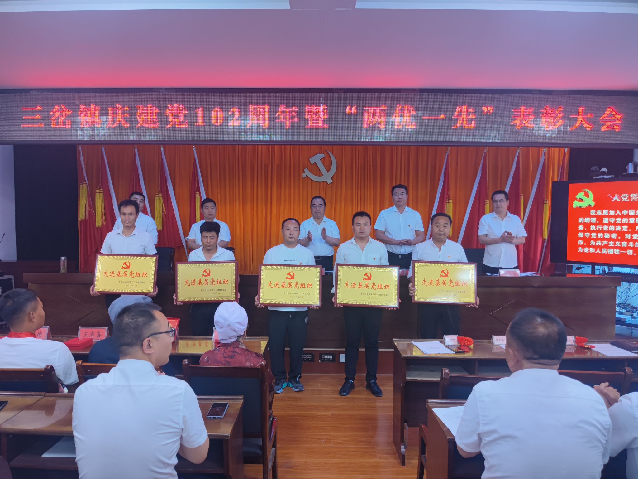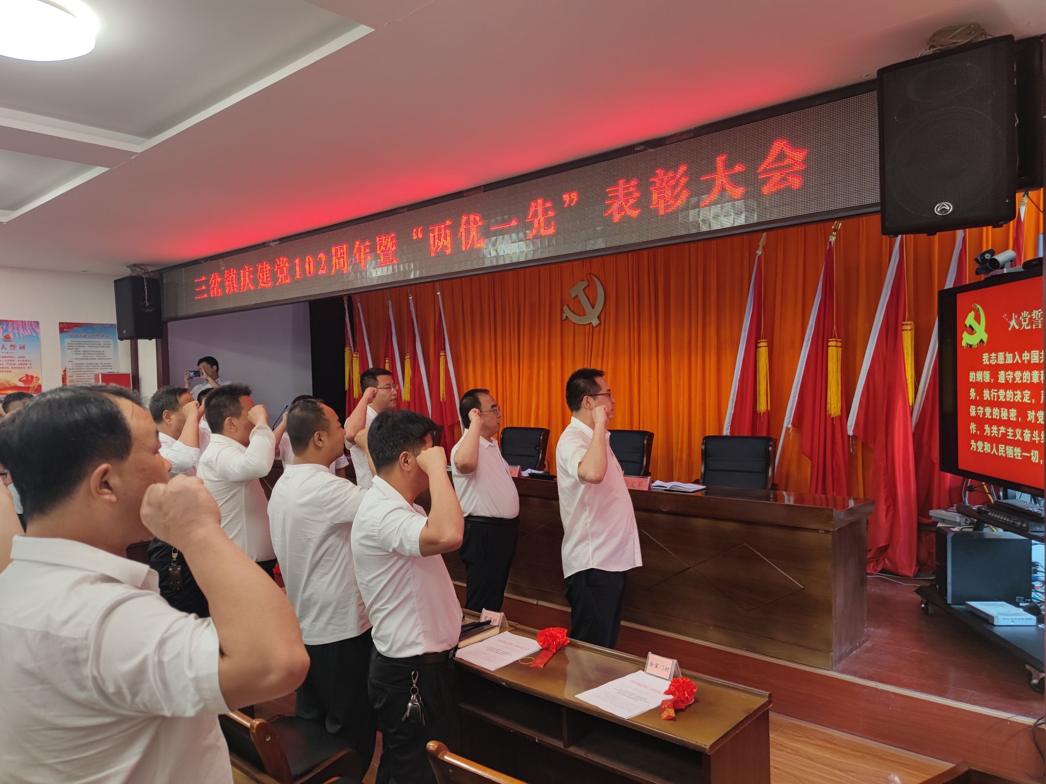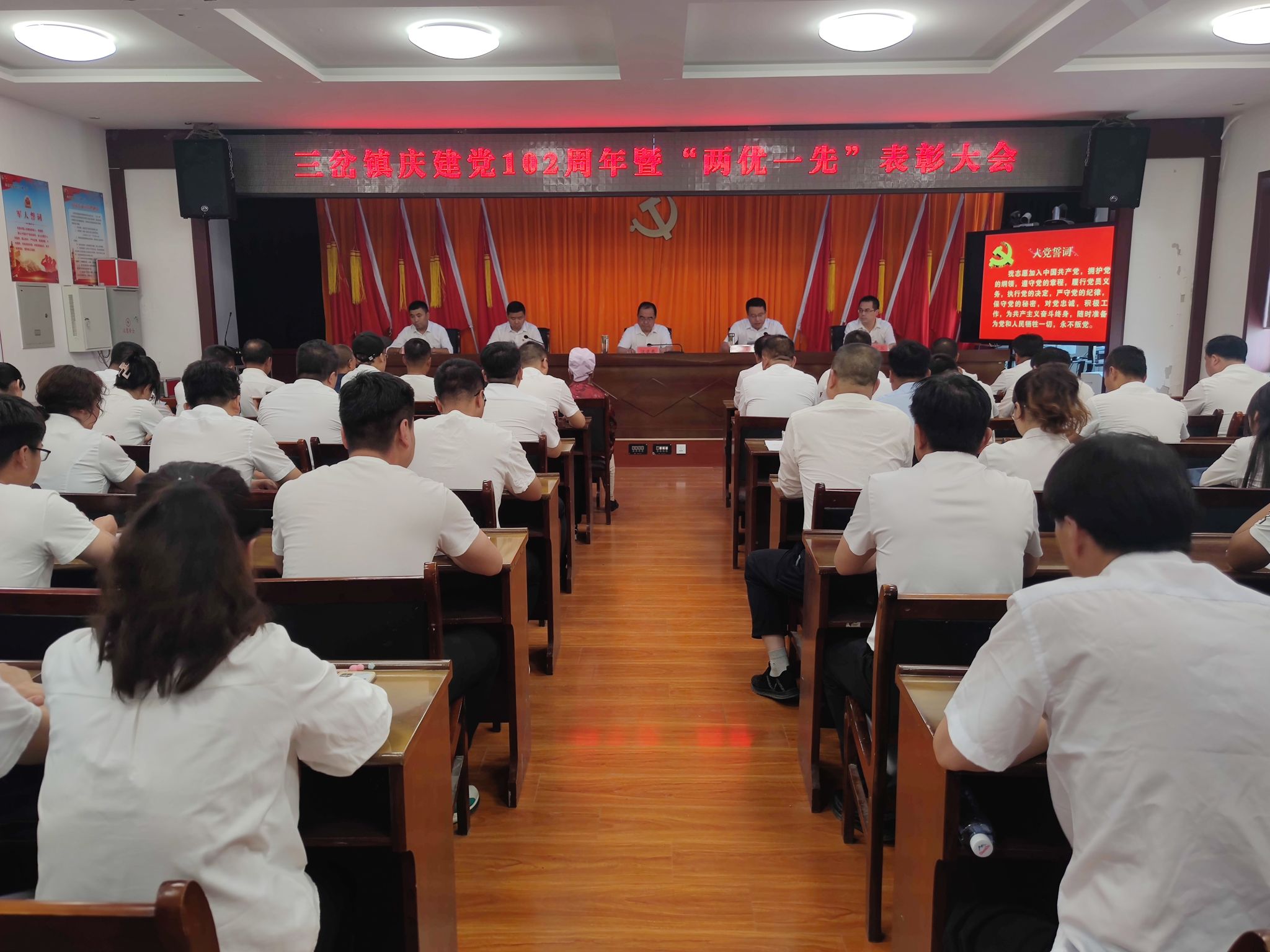 为庆祝中国共产党成立102周年,弘扬伟大建党精神,赓续红色血脉,传承红色基因,激励全镇党员对标学习的自觉性和广大群众向党组织靠拢的积极性。6月29日下午,三岔镇召开庆祝建党102周年暨“两优一先”表彰大会,镇领导班子成员、全体镇干部、各村党支部书记、驻村帮扶工作队第一书记、“光荣在党五十年”纪念章获得者和受表彰的先进个人参加会议。