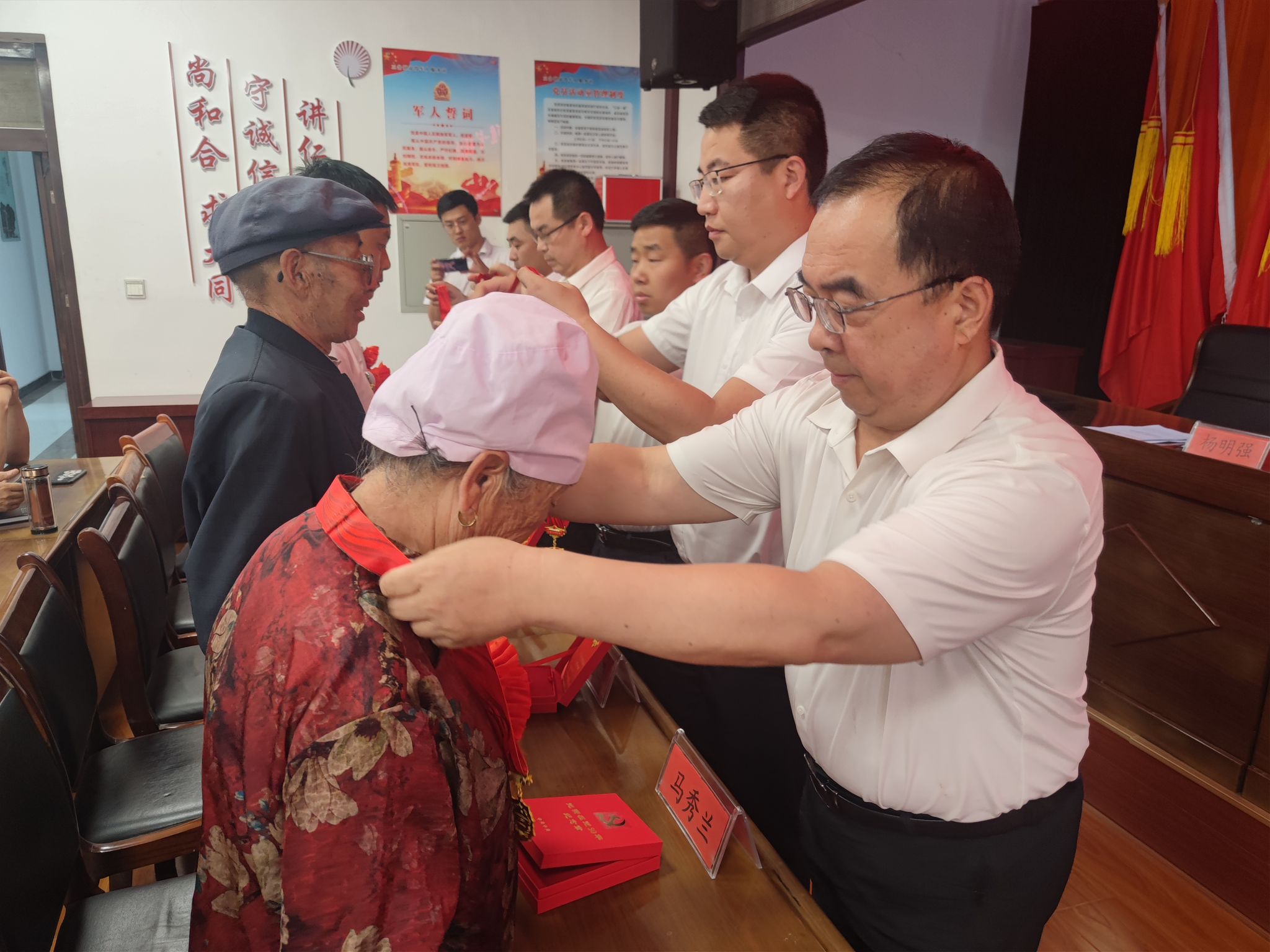 五十年党龄、五十载光辉。老党员是我镇发展过程的亲历者、见证者、实践者,用一生的精力和毕生的心血,默默无闻为党工作,用实际行动诠释了初心使命。镇党委书记汪正东为“光荣在党50年”的老党员们戴上纪念章,切实把党和政府的温暖送到他们的心坎上。通过举办“光荣在党50年”纪念章颁发仪式,既是传递党的关怀温暖的务实之举,更是对全镇广大党员的深刻党性教育,大家要以老党员为标杆和榜样,不忘初心跟党走,接续奋进新时代。