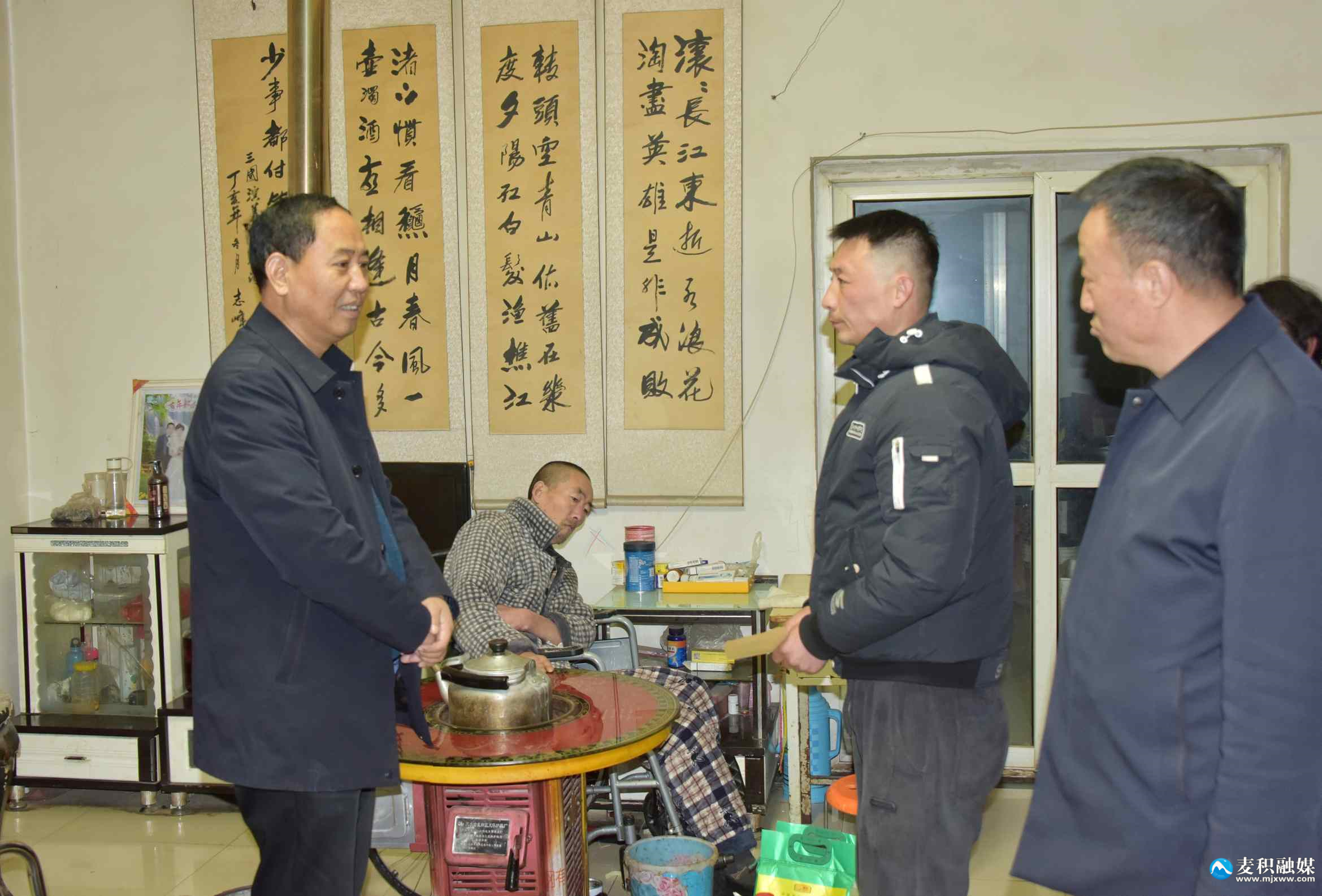 麦积区融媒体中心讯(记者 龙云飞 马玉婷)1月29日,区委书记康泰来到马跑泉镇东山村看望慰问结对关爱对象和困难群众,为他们送上党和政府的关怀。区领导王明、田强参加慰问。