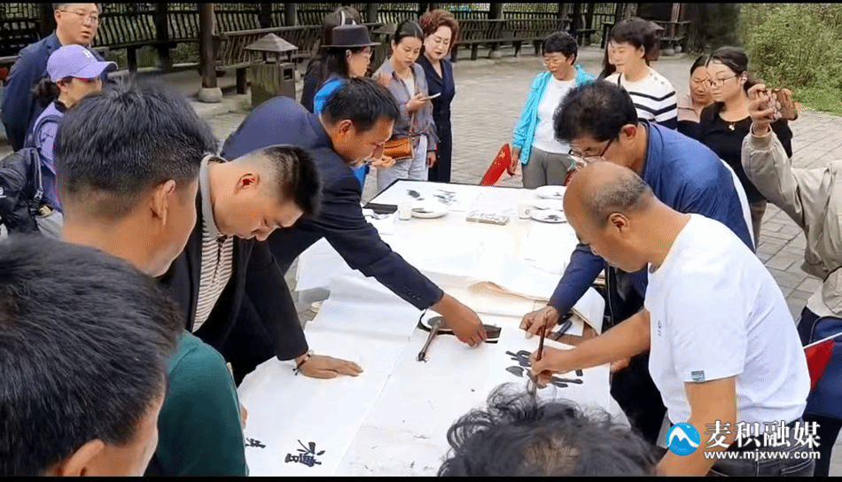 在东岔桃花沟景区,网络人士紧扣活动主题,以诙谐幽默的快板、激昂高亢的歌声、铿锵有力的摇滚,展现了新阶层人士昂扬向上的精神风貌。新联会文化传承分会书画爱好者泼墨挥毫、笔走龙蛇,以书言志、以画寄情,用一幅幅意境悠远的书画作品为新中国成立75周年献上了一道丰盛的文化大餐。