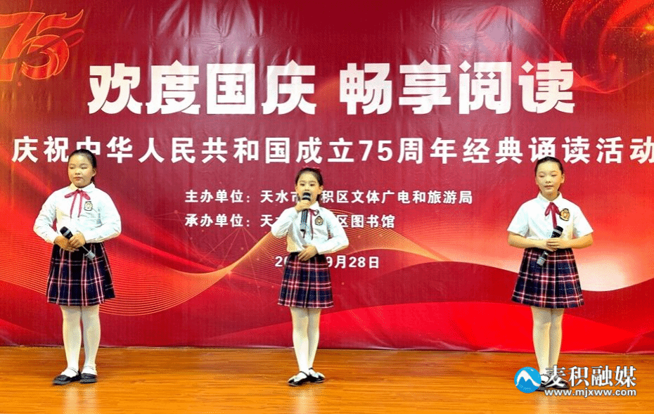 麦积区融媒体中心讯(记者 杜佳 吴雪镕)近日,由麦积区文体广电和旅游局主办,麦积区图书馆承办的“欢度国庆 畅享阅读”——庆祝中华人民共和国成立75周年经典诵读活动在麦积区图书馆举行。