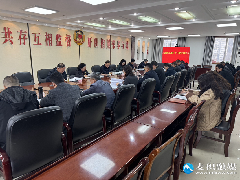 麦积区融媒体中心讯(记者 王玮瑕)2月20日,麦积区政协党组书记、主席高志强主持召开区政协九届二十三次主席会议。区政协副主席兰春梅、张建凤、雷晓勇、石根才,秘书长王旺红出席会议。