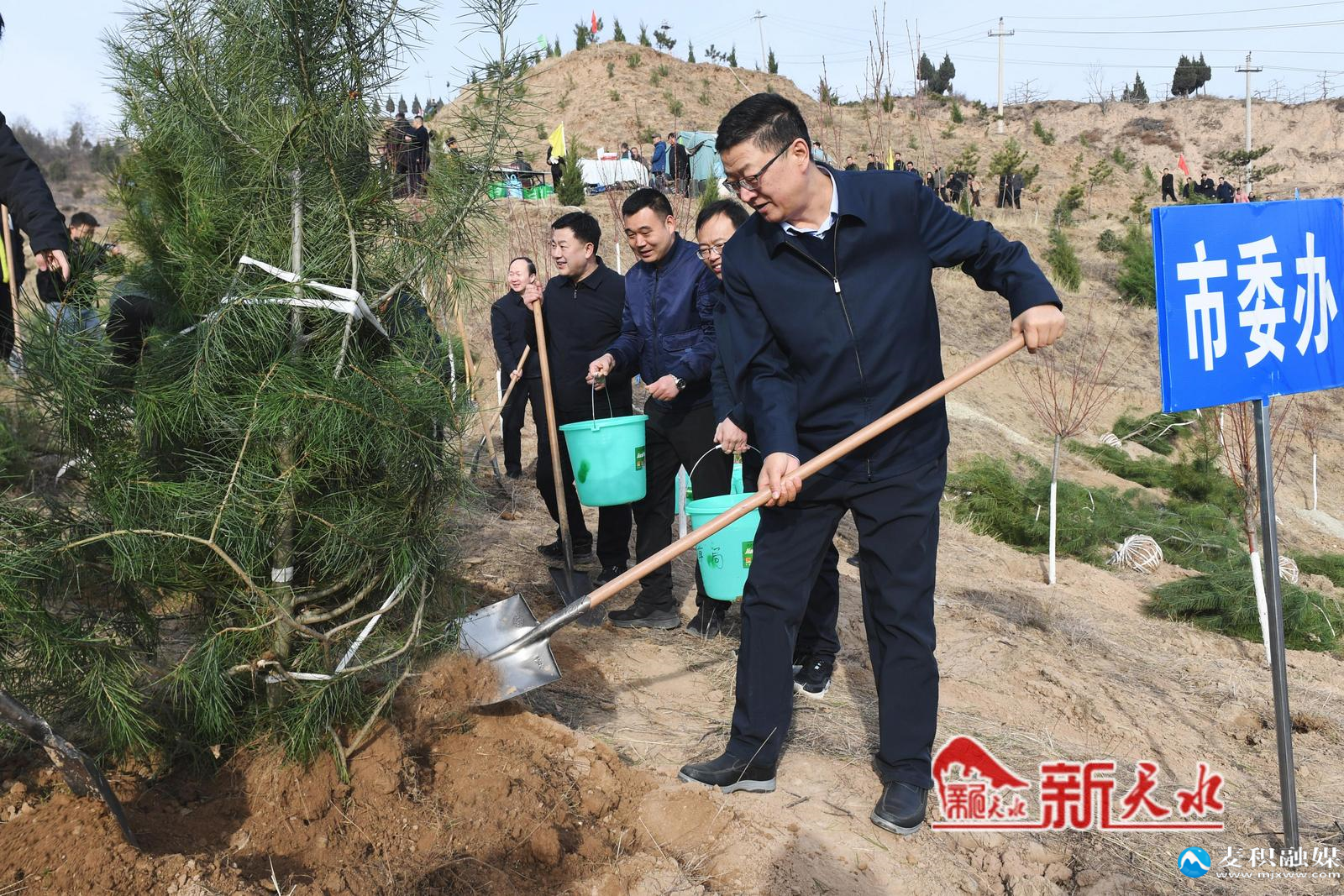 新天水讯【记者 马放】春风拂面万物复苏,植树添绿正当其时。3月17日上午,市委书记冯文戈,市委副书记、市长刘力江,市人大常委会主任贾义翔,市政协主席王燕带领市四大班子在家领导来到麦积区花牛镇董家沟义务植树基地,与干部职工一起参加义务植树活动,以实际行动践行绿水青山就是金山银山理念,共同为美丽天水建设增绿添彩。