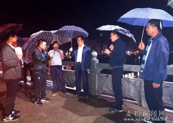 随后,成少平一行来到渭河城区段、藉河、颖川河、牛头河沿线及城区东排洪渠、东立交、中立交等重点区域,现场查看行洪状况及隐患点抢险情况,现场指挥部署应急抢险工作。区委常委、马跑泉镇党委书记高志强,副区长杜根祥、王启峰一同现场指导抢险救灾工作。