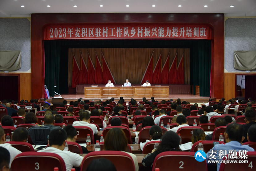 麦积区融媒体中心讯(记者 王雯 吕柄辉)7月3日,麦积区2023年驻村工作队乡村振兴能力提升培训班开班。区委书记康泰来作了讲话,区委副书记朵建东,区委常委、组织部部长王军龙参加开班仪式。