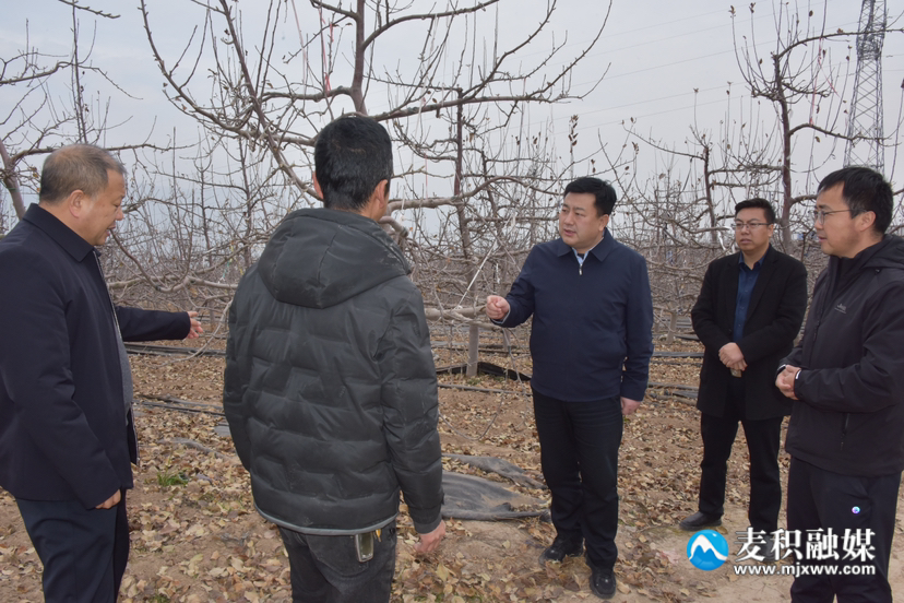 在花牛镇董塬村、马跑泉镇龙槐村、甘泉镇金胡村等地,赵虎生详细了解果园提升改造、高标准农田建设、特色产业发展等情况。他强调,要坚定不移走规模化、标准化、产业化发展新路子,依托资源禀赋和产业基础,以延链补链强链为抓手,优化产业布局,大力发展设施农业,做强做优果品等富民产业,推动农业特色产业迭代升级、提质增效,切实以产业规模化发展引领乡村全面振兴。要大力实施藏粮于地、藏粮于技战略,加强高标准农田和基础设施建设,巩固撂荒地整治成果,坚决守住粮食安全底线。