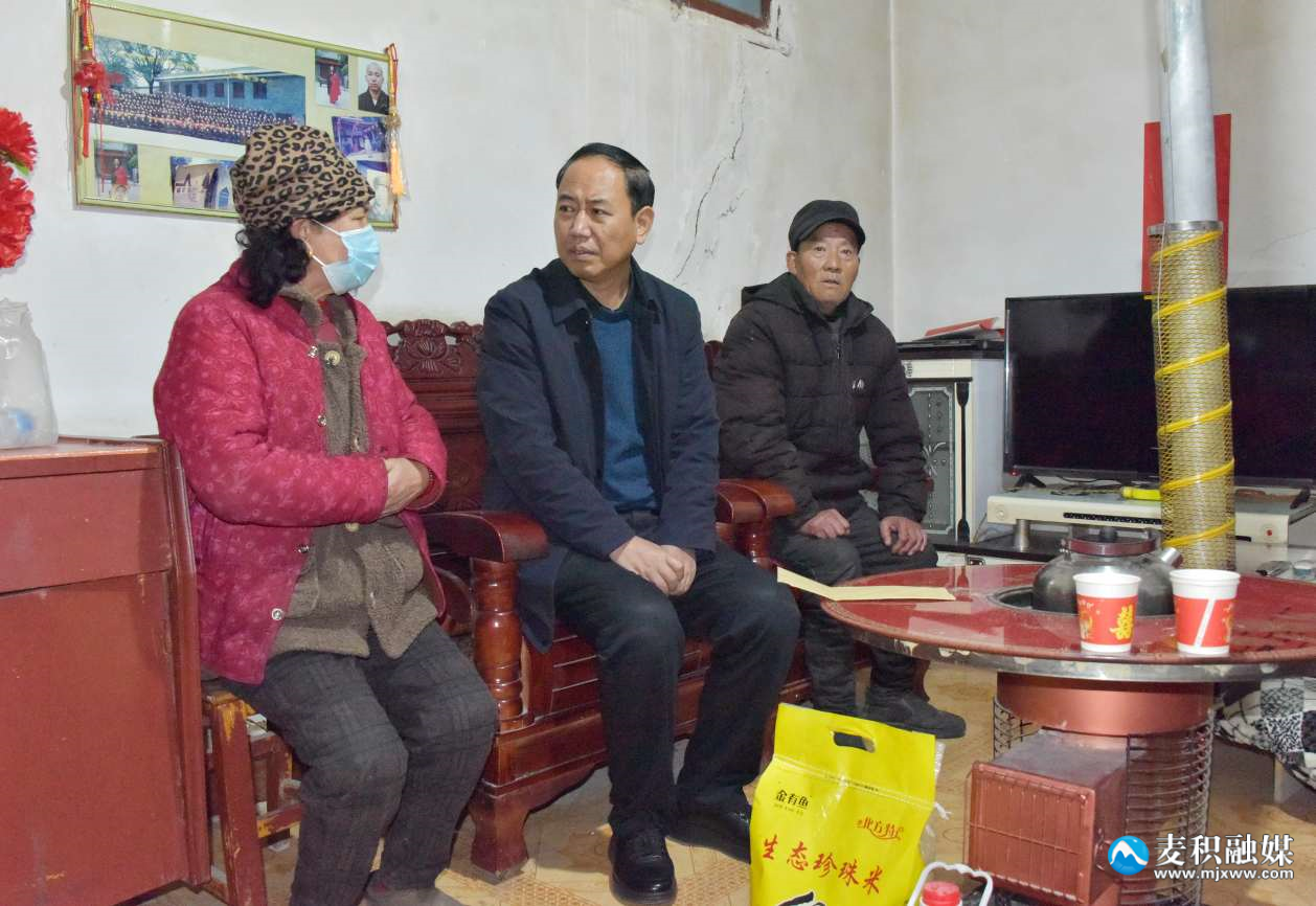 麦积区融媒体中心讯(记者 龙云飞 马玉婷)1月29日,区委书记康泰来到马跑泉镇东山村看望慰问结对关爱对象和困难群众,为他们送上党和政府的关怀。区领导王明、田强参加慰问。