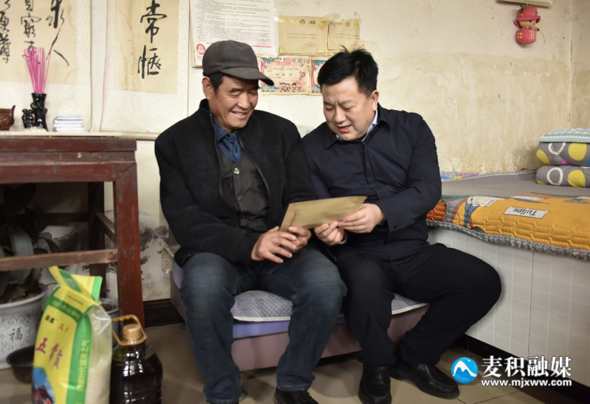 麦积区融媒体中心讯(记者 王雯 吕柄辉)新春佳节即将来临之际,2月2日,区委副书记、区长赵虎生深入花牛镇白家河、杨家河村,走访慰问结对帮扶对象和困难群众,为他们送去党和政府的关怀与温暖,并送去新春佳节的问候和美好祝福。