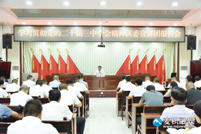 麦积区融媒体中心讯(记者 王雯 宋倩倩)9月4日,区委副书记、区长赵虎生在花牛镇宣讲党的二十届三中全会精神。他强调,要把学习贯彻党的二十届三中全会精神同当前各项重点工作结合起来,聚力抓主抓重、苦干实干,全力以赴推动镇域经济社会高质量发展,努力在麦积现代化建设新征程中做示范、走前列,坚决当好贯彻落实全会精神的执行者和实干家。