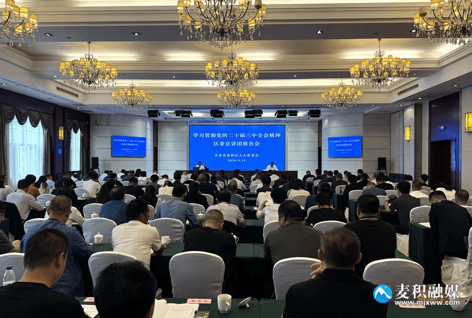 麦积区融媒体中心讯(记者 宋倩倩)为进一步学习宣传贯彻党的二十届三中全会精神,在全面深化改革、推进中国式现代化中履职尽责、担当作为,切实把思想和行动统一到党中央决策部署上来,9月19日下午,麦积区人大常委会组织省市区人大代表和全区人大干部举办学习贯彻党的二十届三中全会精神宣讲报告会。报告会由区委讲师团成员、区委党校副教授宋彦军宣讲。