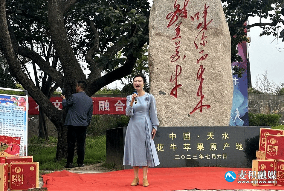 麦积区融媒体中心讯(记者 白梨 张丹)庆丰收,迎国庆。9月28日,著名女高音歌唱家侯立娜,天水西秦腔研究院院长、中国四小名旦、国家一级演员、著名秦腔表演艺术家袁丫丫等知名艺术家走进麦积区南山花牛苹果基地开展公益助农活动。区委常委、副区长刘灿出席活动。