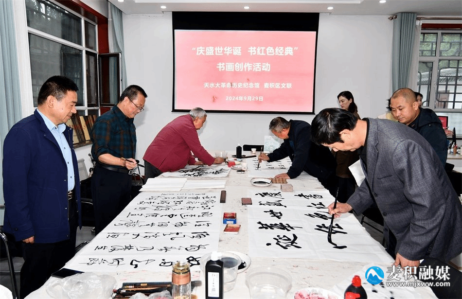 麦积区融媒体中心讯(特约记者 窦耀辉)为庆祝中华人民共和国成立75周年,9月29日,天水大革命历史纪念馆联合麦积区文联开展“庆盛世华诞、书红色经典”书画创作交流活动,进一步弘扬革命精神,赓续红色根脉,厚植爱国主义情怀。