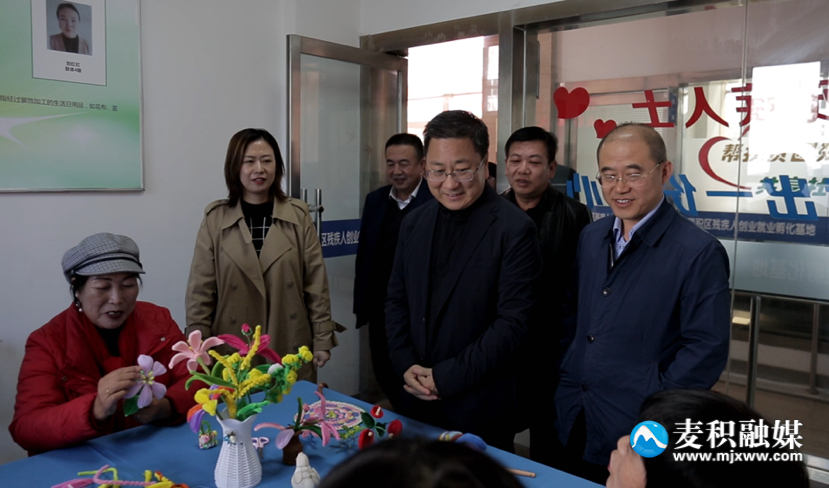 杨君一行先后来到花牛镇二十里铺村、麦积镇便民店爱心屋、麦积区残疾人创业就业孵化基地,通过走访慰问、实地查看、询问交流等方式,详细了解麦积区残疾人工作情况。