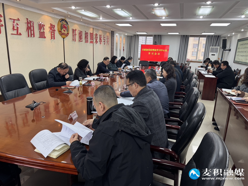 麦积区融媒体中心讯(记者 王玮瑕)2月20日,麦积区政协党组书记、主席高志强主持召开区政协党组理论学习中心组学习会议。区政协党组成员、副主席兰春梅、雷晓勇、石根才,党组成员、秘书长王旺红出席会议,党外副主席张建凤列席会议。