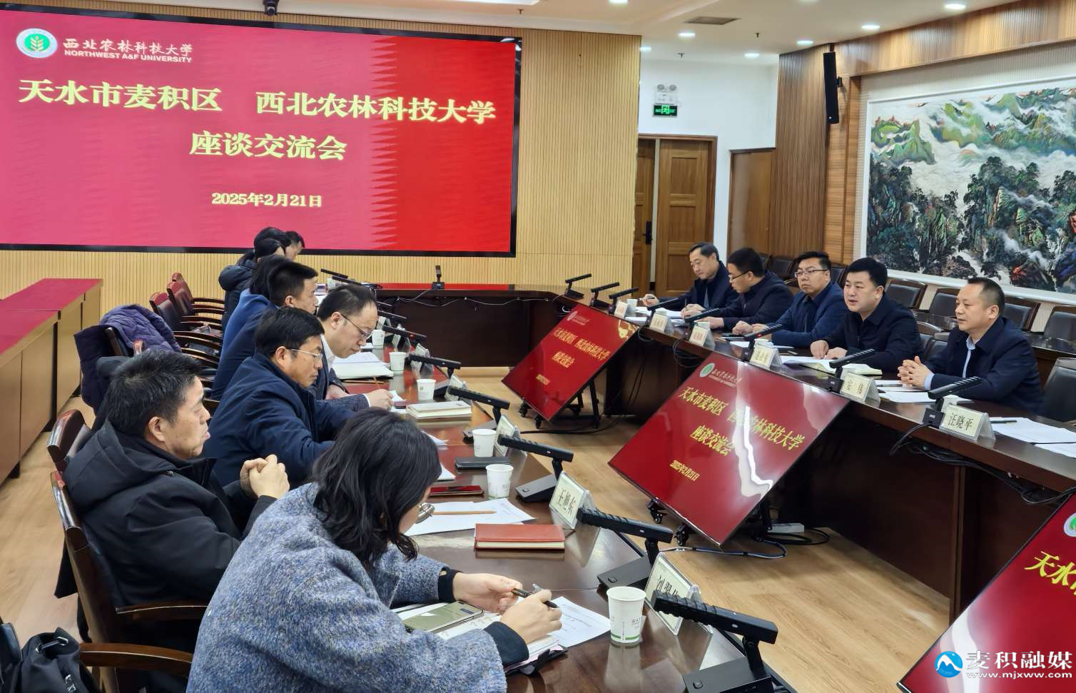 西北农林科技大学副校长刘天军,园艺学院院长管清美,信息工程学院院长张宏鸣,园艺学院教授赵政阳、蔡宇良、李超及副教授刘翠华,资源环境学院教授王旭东,机械与电子工程学院教授杨福增,新农村发展研究院合作与基地办公室主任、科技退管处副处长高永强,区领导安伟、赵锦鹏出席会议。座谈会前,西北农林科技大学党委书记黄思光、党委副书记闫祖书与麦积区相关领导进行了深入交流。