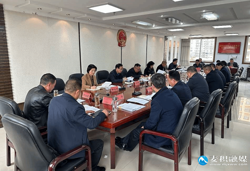 麦积区融媒体中心讯(记者 吕柄辉)3月23日,麦积区九届人大常委会召开第三十九次主任会议。区人大常委会党组书记、主任赵继文主持会议,区人大常委会副主任杨彦芳、陈书田、董小社、邵海云出席会议。