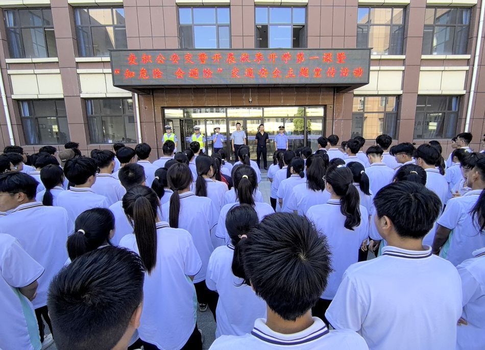 麦积区融媒体中心讯(记者 刘秋钰 董洁)为保障开学季交通安全,拓展学生交通安全知识面,提升广大师生的交通安全出行意识,8月27日,麦积公安交警走进麦积区职业中等专业学校开展秋季开学第一课暨“知危险 会避险”交通安全主题宣传活动。