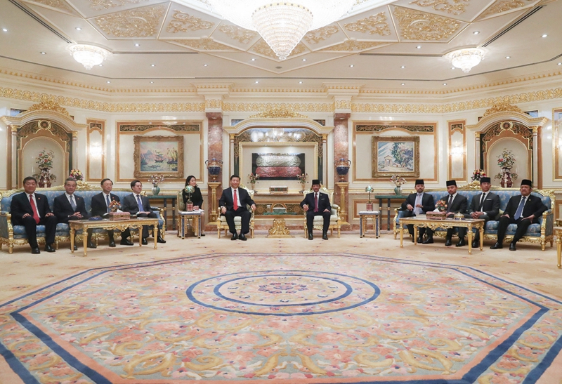 习近平同文莱王室成员亲切交谈。习近平表示,衷心祝贺文莱经济社会发展取得的成就。一踏上这片和平美丽的土地,我就真切感受到苏丹陛下和王室以及文莱人民对中国人民的深情厚谊。中方赞赏文莱王室长期奉行对华友好政策,欢迎王室成员多到中国各地走走、看看。相信在双方共同努力下,中文传统友好将不断发扬光大,两国互利合作将不断取得丰硕成果。