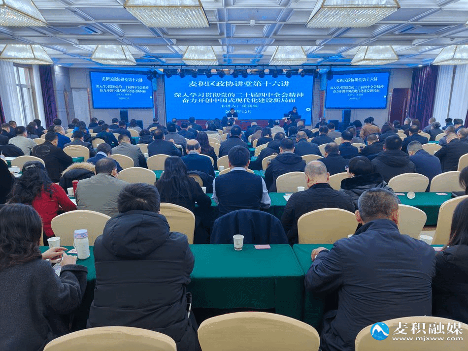 麦积区融媒体中心讯 (记者 王博雅)为全面深入学习宣传贯彻党的二十届四中全会精神,12月10日,麦积区举办“政协讲堂”第十六讲。区政协党组书记、主席高志强主持讲座并讲话,区政协副主席兰春梅、张建凤、雷晓勇、石根才,秘书长王旺红及区政协全体委员、机关干部职工聆听了讲座。