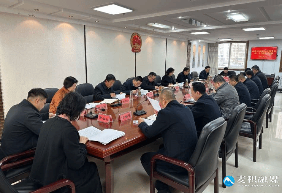 麦积区融媒体中心讯(记者 吕柄辉)12月29日,麦积区九届人大常委会召开第三十六次主任会议。区人大常委会党组书记、主任赵继文主持会议,区人大常委会副主任杨彦芳、高炳蔚、陈书田、谢崇太、董小社、邵海云出席会议。
