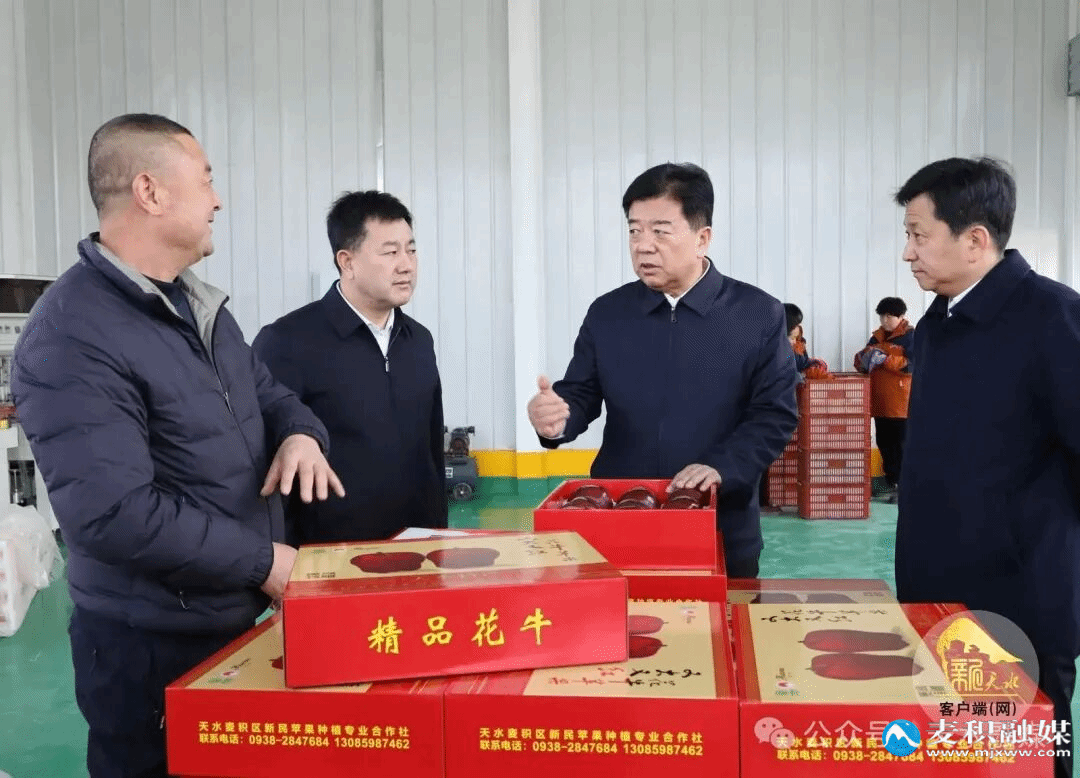 2月4日下午,市委书记杨金泉在麦积区专题调研花牛苹果产业发展情况。他强调,要深入贯彻落实习近平总书记视察甘肃重要讲话重要指示精神,牢记总书记视察南山花牛苹果基地时的殷殷嘱托,接续奋斗,感恩奋进,以科技引领促进花牛苹果产业全链条提升,持续擦亮花牛苹果品牌,带动更多群众增收致富。
